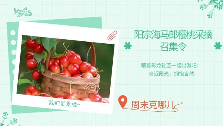 叮~陽宗海馬郎櫻桃采摘外拍召集令請查收 本周六彩龍帶你去“嘗鮮”!