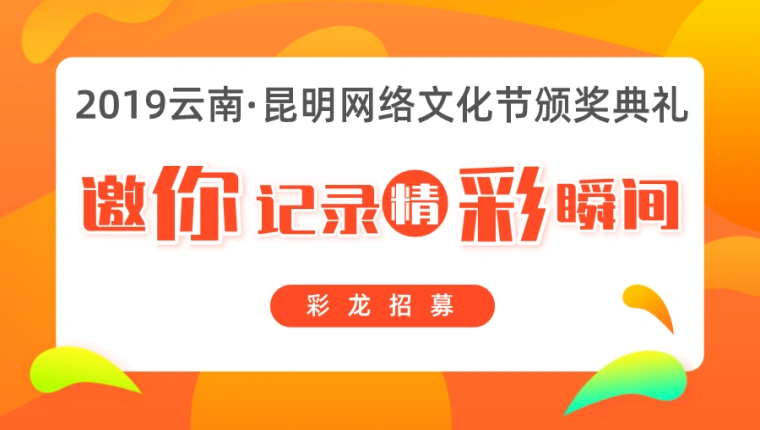 彩龍招募|2019云南·昆明網(wǎng)絡(luò)文化節(jié)頒獎典禮 邀你記錄精彩瞬間