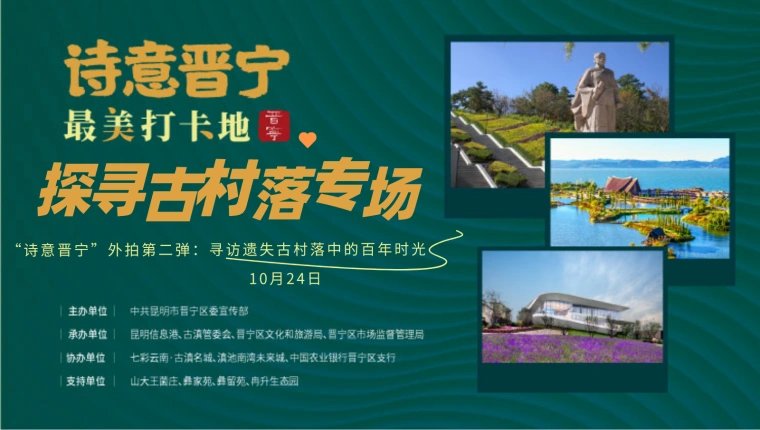 本次外拍活動為“詩意晉寧”最美打卡地推介評選活動系列外拍之一,需要大家多多參與活動,投稿你心目中晉寧最美“打卡地”。作品傳至彩龍社區(qū)、抖音、快手、小紅書等平臺,帶上#詩意晉寧#標簽即可投稿,視頻、圖片都行哦!活動最高獎金6千元,還有豐富的錦鯉紅包。