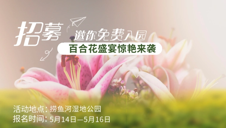 1、名額:目前,撈漁河濕地公園的60萬株百合花逐漸進入盛花期,活動組織方公開征集20名優(yōu)秀網(wǎng)友,免費入園采風拍攝。