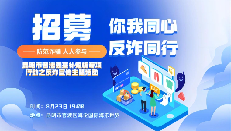 招募 | "你我同心·反詐同行"昆明市普法強(qiáng)基補(bǔ)短板專項(xiàng)行動(dòng)之反詐宣傳主題活動(dòng)來啦