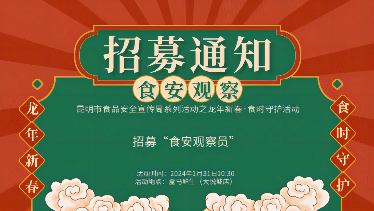 招募|昆明市2023年度食品安全宣傳周系列活動(dòng)——“龍年新春·食時(shí)守護(hù)”招募食安觀察員啦!