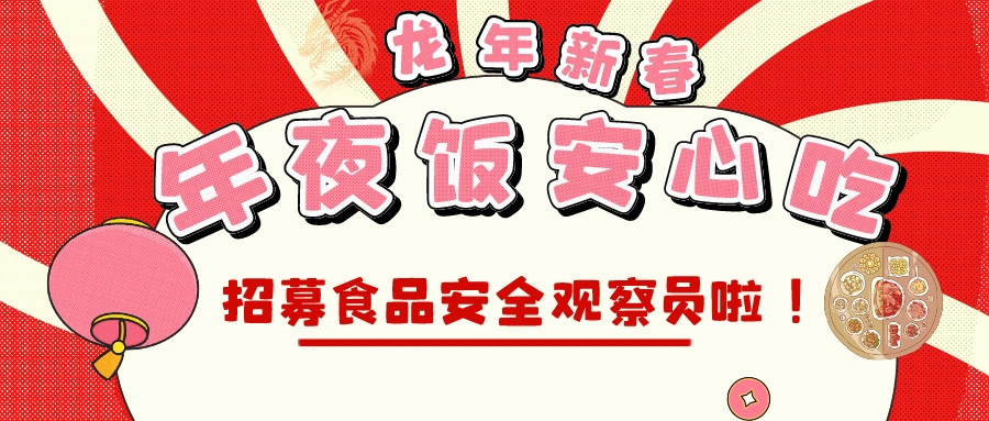 “龍年新春 年夜飯安心吃”活動(dòng)招募食品安全觀察員啦!