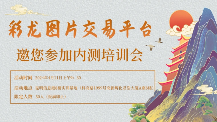 彩龍圖片交易平臺進入測試階段,為了更好的服務廣大攝影師和各位網友,彩龍社區(qū)將于2024年4月11日上午9:30 ,在昆明信息港8樓實訓基地舉辦內測培訓會,特邀請您作為平臺首批入駐攝影師,帶上作品,報名參會。
