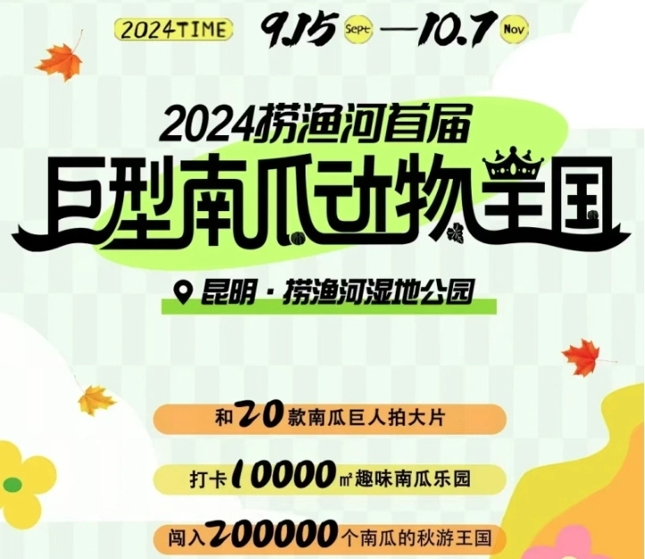 心隨秋動(dòng),還不知道初秋的昆明有什么好去處?三角梅已花開(kāi)成海,南瓜王國(guó)里到處洋溢著豐收的喜悅,撈漁河濕地公園熱情地邀請(qǐng)您的加入。這里有“前往”豐收現(xiàn)場(chǎng)的南瓜巴士、萌娃們喜愛(ài)的動(dòng)漫角色、形態(tài)逼真的各種動(dòng)物造型、用南瓜堆出的4米高的“海綿寶寶”、引發(fā)大家對(duì)保護(hù)海洋思考的海洋動(dòng)物、融入科技由AI設(shè)計(jì)的各種展品、展示各種類型南瓜的南瓜房子、涂鴉館里任意繪畫(huà)涂色的南瓜等等......