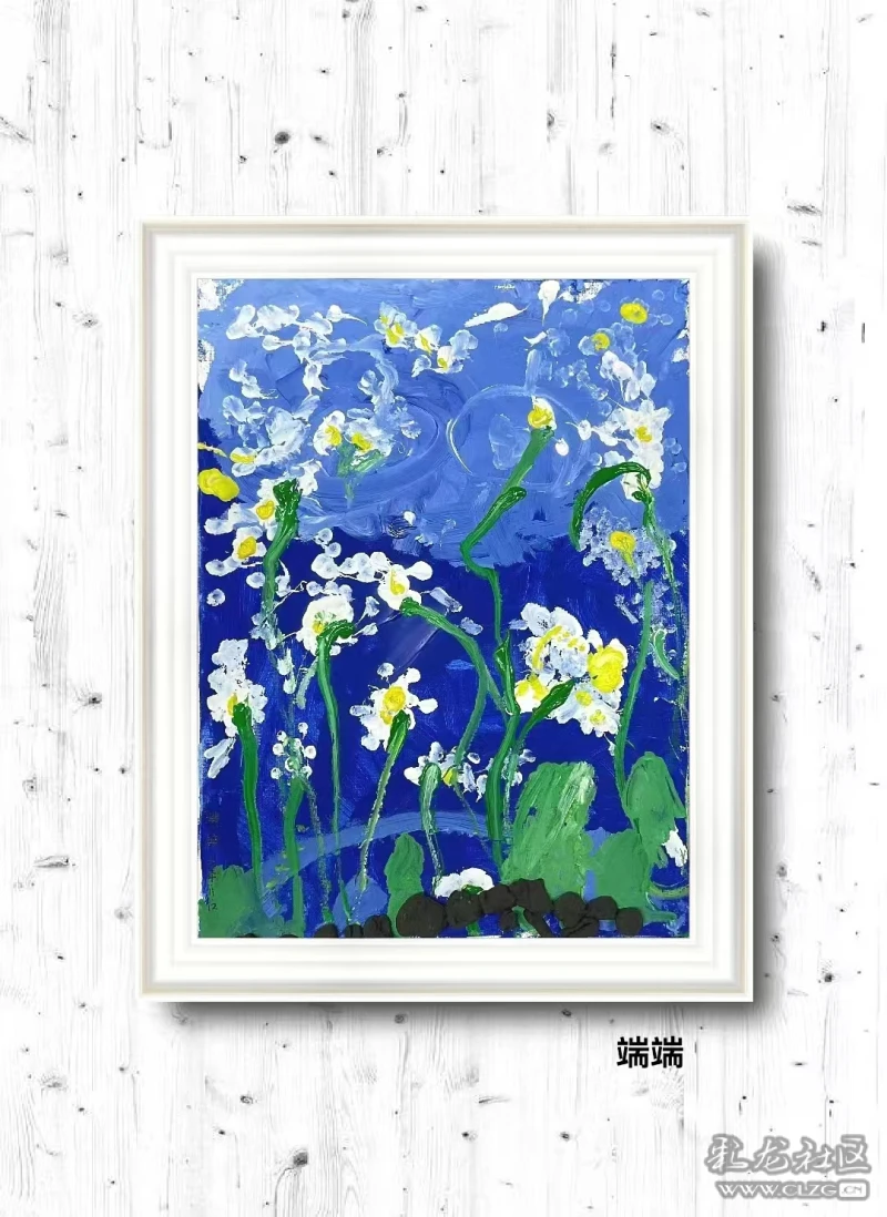 其間,小小慈善家們的到來,為義拍會(huì)增添了些許童趣和靈動(dòng)。最小的,有三歲的陸識(shí)月小朋友,她捐贈(zèng)了自己的繪畫作品。