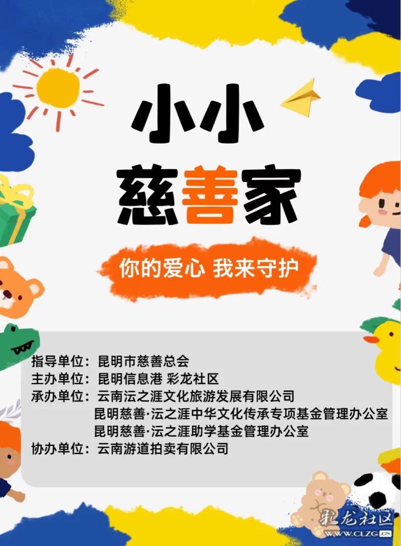 本次“小小慈善家”系列公益活動(dòng)由昆明市慈善總會(huì)作為指導(dǎo)單位,由昆明信息港彩龍社區(qū)主辦,云南沄之涯文化旅游發(fā)展有限公司、昆明慈善·沄之涯中華文化傳承專項(xiàng)基金管理辦公室、昆明慈善·沄之涯助學(xué)基金管理辦公室承辦,云南游道拍賣有限公司協(xié)辦,廣泛動(dòng)員16歲以下的兒童、青少年參與公益活動(dòng),捐出零錢、書畫作品、創(chuàng)意手工物件、閑置書籍等等。所捐財(cái)物以及義拍、義賣所得全部納入“昆明慈善·沄之涯中華文化傳承專項(xiàng)基金”以及“昆明慈善·沄之涯助學(xué)專項(xiàng)基金”,助力中華文化傳承發(fā)展。