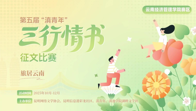 第五屆“滇青年”三行情書征文比賽以“旅居云南”為主題,邀請各位同學(xué)化身云南推薦官,以三行筆墨捕捉這份獨(dú)特體驗(yàn):可以是斗南花市的花香漫過書頁,是古滇康養(yǎng)園的日落輕落肩頭,是鄉(xiāng)村民宿里與村民共話的家常;也可以是“文化新村民”的扎根故事,是“體育 + 旅居”的活力瞬間,或是對“寶藏小城”的溫柔告白。讓一篇篇三行情書,成為旅居記憶的凝練注腳,延續(xù)賽事扎根本土、引領(lǐng)思潮的特質(zhì),在筆墨間定格 “有一種叫云南的生活”。