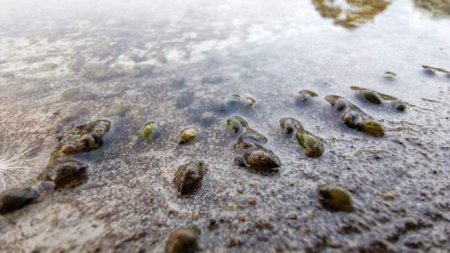 滇池北岸發(fā)現(xiàn)數(shù)不清的滇池螺螄寶寶