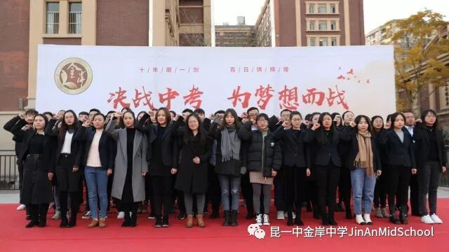“百日前,迎著朝霞,是誰,青春無限,躊躇滿志?六月后,踏著夕陽,是誰,信心滿滿,志在必得?”這是昆一中金岸中學(xué)初三年級(jí)全體師生的心聲。