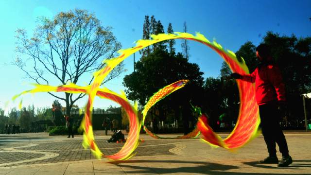 玩舞龍健身彩帶,能促進(jìn)全身血液循環(huán),增強(qiáng)身體柔韌性和協(xié)調(diào)性,使手腕更加靈活,增強(qiáng)手腕上血管的彈性。