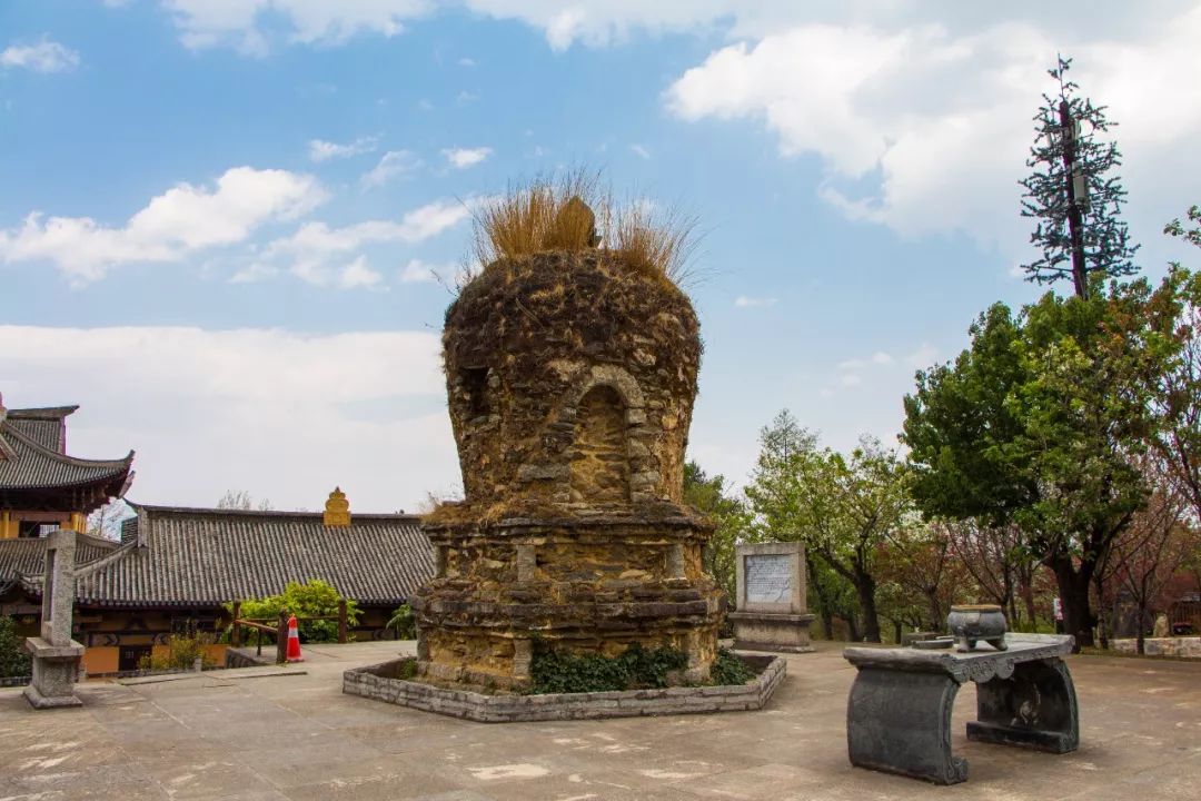 出了皇宮,來到了日本四僧塔前面,據(jù)說,這座塔距今已有600余年,旁邊的碑文上記載著關(guān)于四僧塔的詳細(xì)信息:“日本四僧塔在龍泉峰北澗之上。逮光古、斗南,其二人失其名,皆日本人,元末遷謫大理,皆能詩善書。卒,學(xué)佛化去,郡人憐而葬之?!彼纳靡员4嬷两瘢x不開大理世代白族人民的保護。