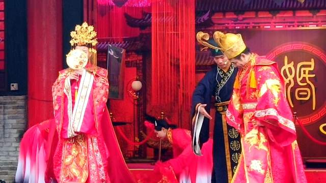 這是天龍八部影視城內(nèi)大遼街每天都有的表演。新郎由現(xiàn)場觀眾參與扮演。感覺儀式還是比較圓滿的,分享給大家。只是每篇視頻只能發(fā)30″,有點長只好分幾段。本段看點是儀式男觀眾的表演。