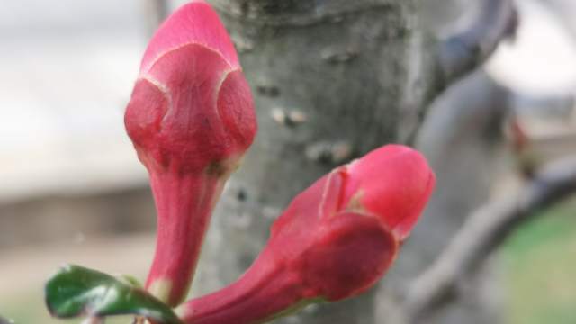 紅艷艷的酸木瓜花兒掛滿枝頭,好看極了。