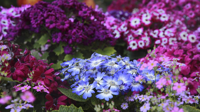 就拿單獨(dú)的花色來(lái)看,一小盆就足以紅似霞光、白似冰雪、粉似火烈鳥(niǎo)、藍(lán)似天鵝絨、紫似夢(mèng)幻仙境。還有那藍(lán)白相間、或者白紅色相間的復(fù)色小花,一朵朵像小太陽(yáng)一樣綻放。如果是把五顏六色的她們擺放在一起,那就是春天里一場(chǎng)繽紛的花卉盛宴。