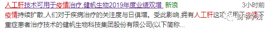 當(dāng)然還有比口罩更吸引人的故事——資本除了賣藥,賣疫苗外還能販賣人工肝……一聽逼格就高,是不是想搜一下相關(guān)概念股了