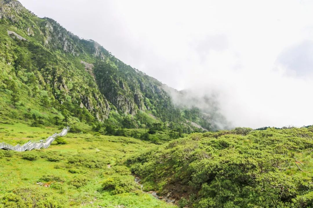 逐漸平緩的地勢,增多的冷杉,洗馬潭索道終點站出現(xiàn)在不遠處,下了索道,看見一望無際的花海杜鵑在冷杉中開放。它美得不自知,而游客如癡如醉,這樣的洗馬潭足夠傲視其他地方。