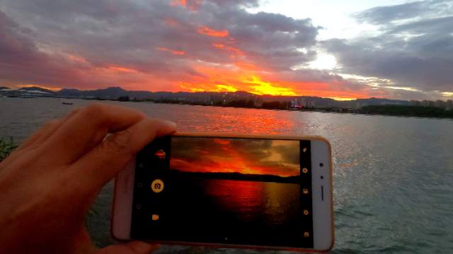 今晚散步發(fā)現(xiàn)一個拍晚霞的好地方,于是手機相機都用上了????