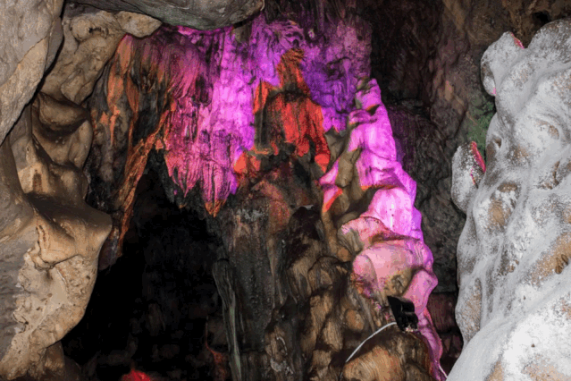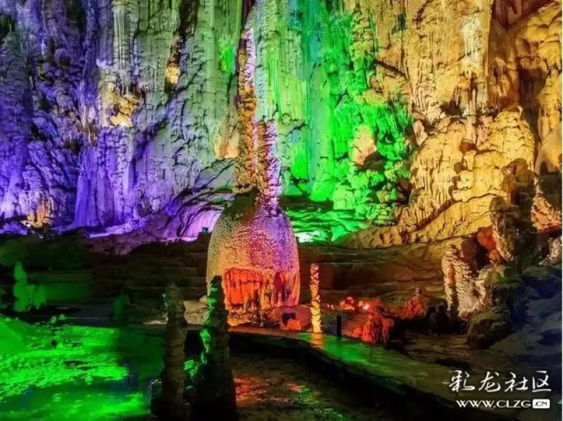 在霓虹燈的照應(yīng)下,色彩斑斕,異彩紛呈。用徒步的方式欣賞之外,還可以選擇坐游船,用另外一種方式體驗探險的樂趣。