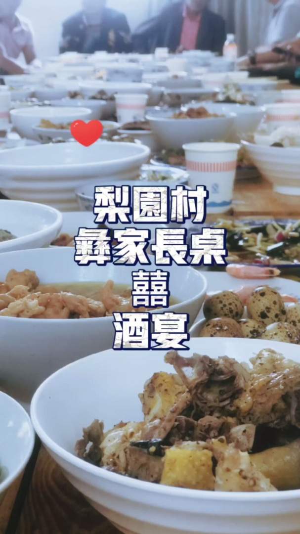 云南安寧縣街梨園村彝家長桌囍酒宴正式開動!