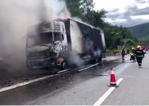 火光沖天 濃煙滾滾!昆楚高速一裝水果貨車被大火包圍