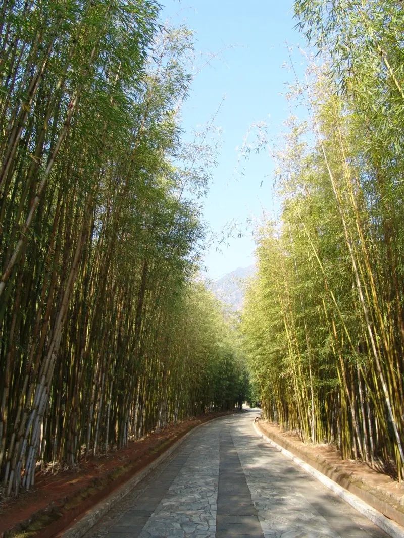 導(dǎo)游小妮告訴我們,左邊的是“阿鵬路”,右邊的是“金花路”,中間為“幸福大道”,三條路中間間栽種的是高大挺拔的鳳尾竹。