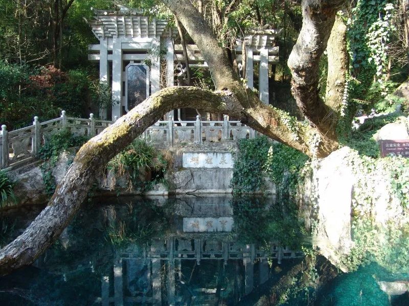 導(dǎo)游小妮和我們介紹說:“蝴蝶泉邊,原有一蓬枝葉茂密、開白花、發(fā)清香的茨蓬,花枝纏在橫斜泉面的樹干上,蝴蝶沿著這些下垂的花枝連成串。但如今,茨蓬已經(jīng)被除去,泉面樹干葉枯,加上周圍自然環(huán)境受到破壞,田野大量使用農(nóng)藥,誤傷不少蝴蝶,那連須鉤足懸于泉面的奇觀,已經(jīng)很久沒有出現(xiàn)了,如果想看蝴蝶的話,我們可以去公園內(nèi)的蝴蝶大世界觀賞”。
