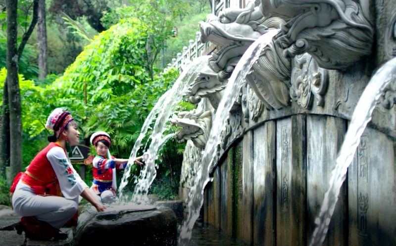 蝴蝶泉附近便是五龍池,泉水汩汩地冒出來。小妮和我們說,當?shù)亓鱾髡f用五龍池的水洗手會給自己帶來好運。