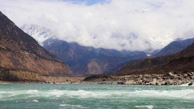 這就是我說的索松村最好的景點。對面這個云霧繚繞的雪峰就是神山南迦巴瓦,眼前這條碧波秀水就是西藏人民的神河雅魯藏布江,這是兩神共存的景點,真是人間仙境!