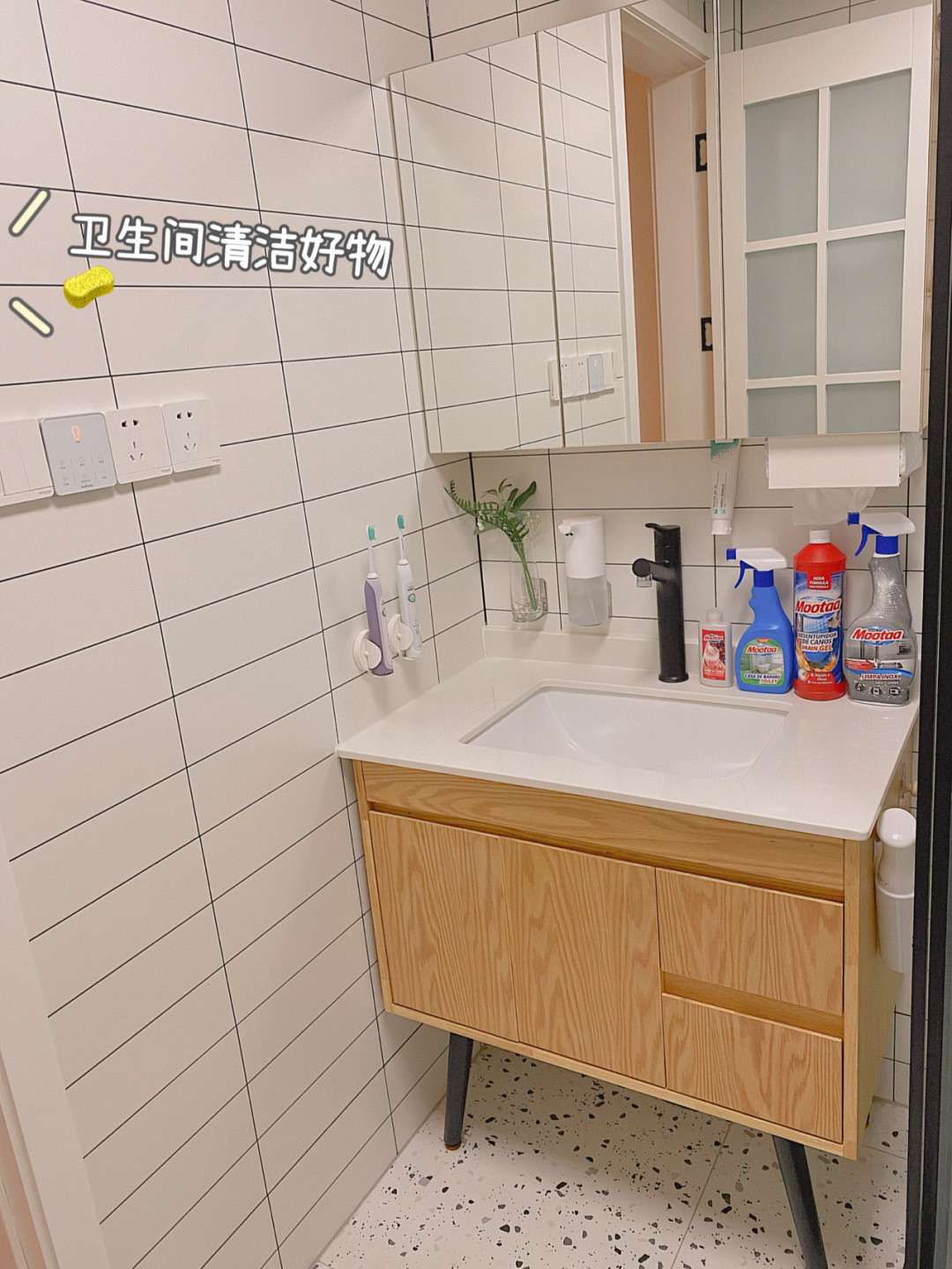 上柜放平時(shí)簡(jiǎn)單的洗護(hù)用品和化妝品護(hù)膚品,下柜放一些清潔用品還有吹風(fēng)機(jī)、卷發(fā)棒,抽屜放備用牙刷等,以便家中來(lái)人可以用都方便。你們一定要記得裝修時(shí)馬桶邊要預(yù)留一個(gè)插座哦,這樣后面裝智能馬桶蓋方便很多,真的蠻有必要的,女孩子生理期坐著溫水清洗很方便,冬天最幸福的就是馬桶圈可以加熱了,上廁所不會(huì)再瑟瑟發(fā)抖了