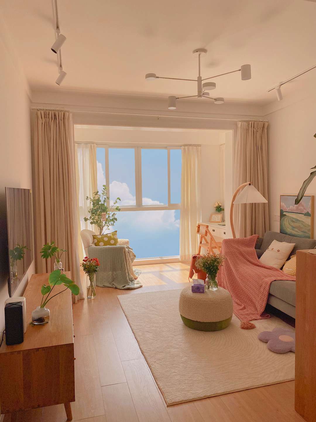 客廳把陽(yáng)臺(tái)納入到客廳內(nèi),再做成落地窗,整個(gè)空間就很通透明亮。
