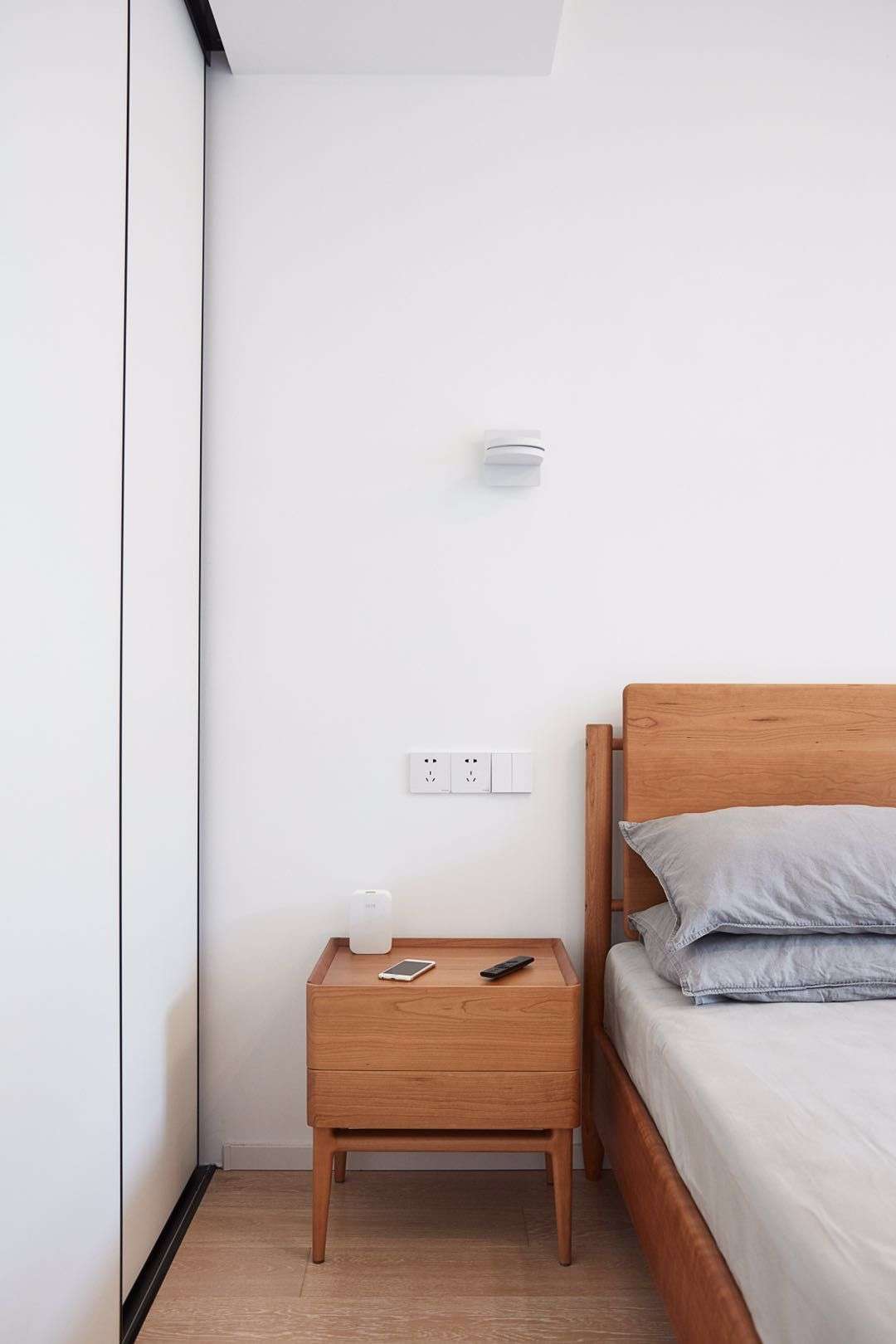 主臥的床和床頭柜也選擇了原木色,簡潔、健康、環(huán)保。