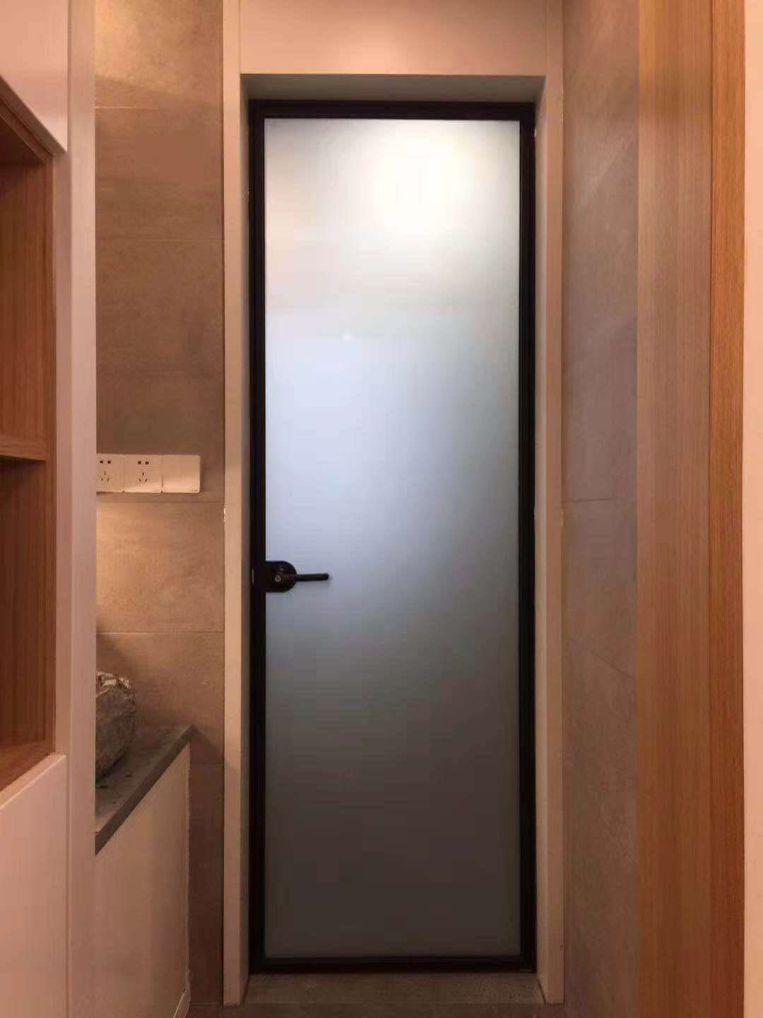 鞋柜的右邊是衛(wèi)生間,做成了干濕分離的,比較方便。用的極簡長虹玻璃門,透光性比較好,不會讓干區(qū)顯太暗。