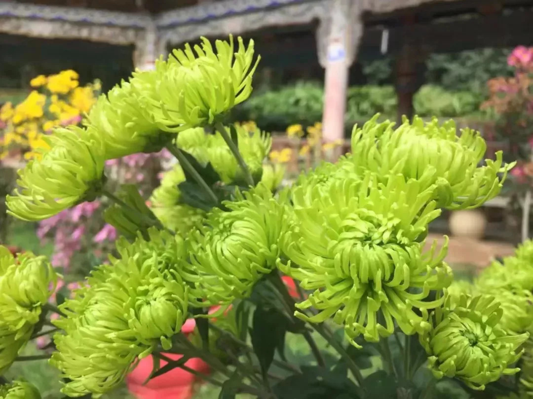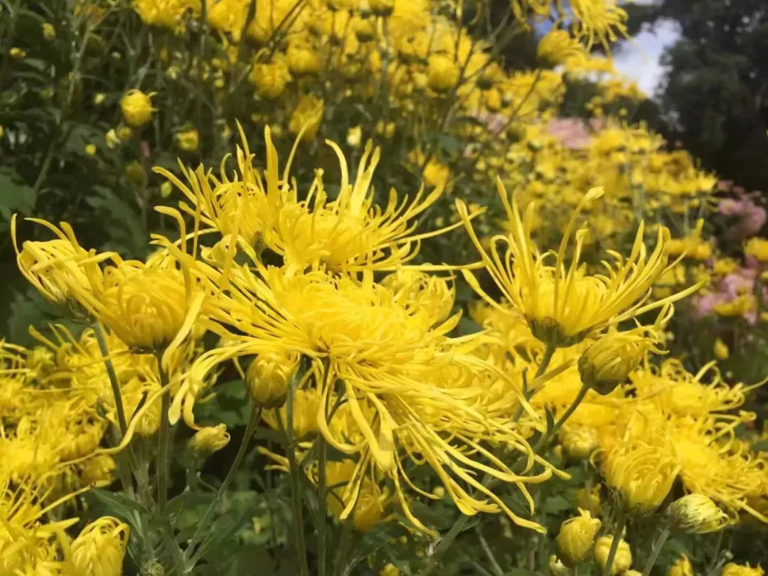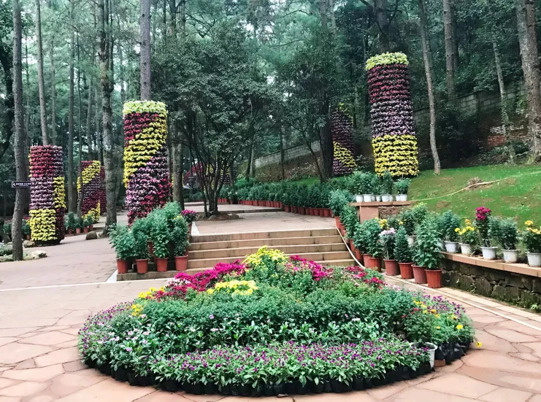 不同花期、不同顏色的菊花,扭動成各種造型擺放在景區(qū)1至3號牡丹園內(nèi)及平頂玉湖周邊林間小道,等您來撩。
