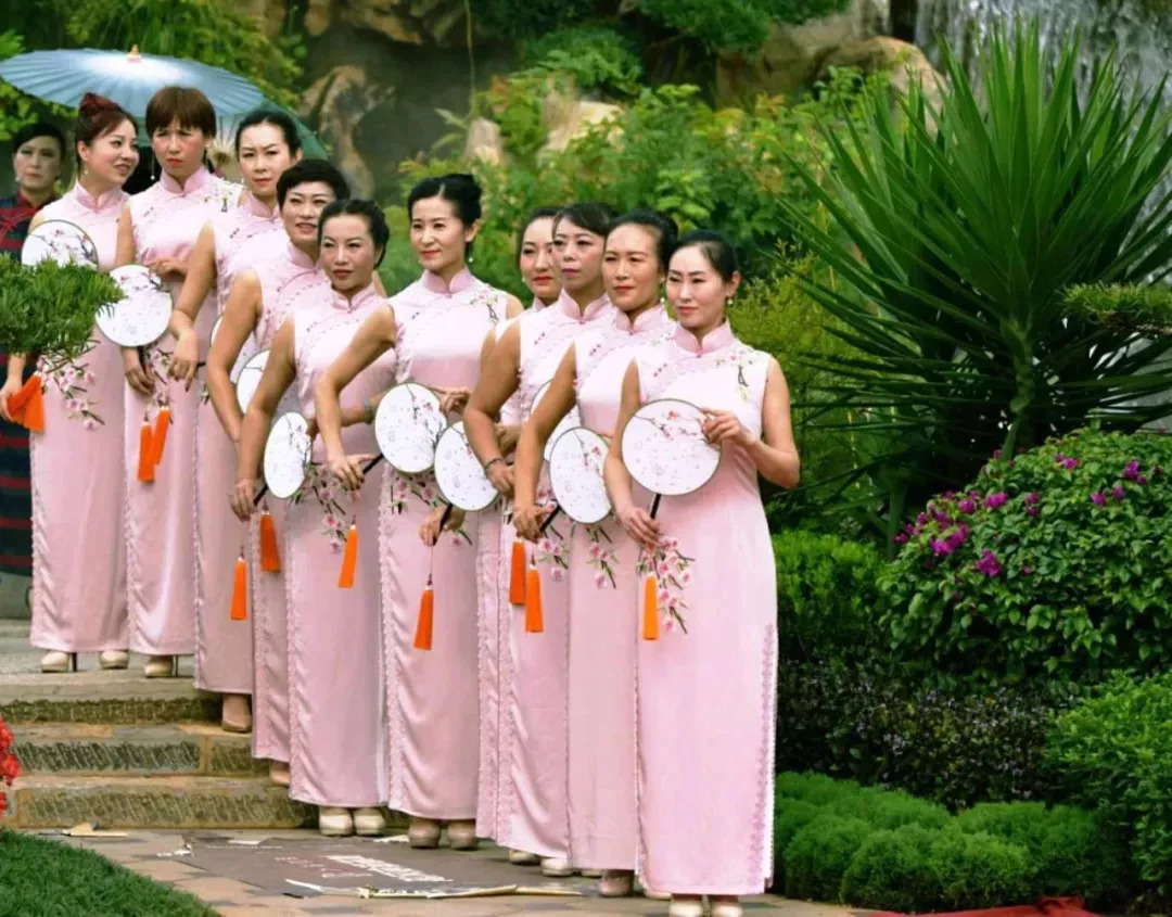 20多支來自全省各地的旗袍秀參賽隊伍的隊員們,在森林邊、玉湖畔,美麗的菊花簇?fù)碇校碇灰u華麗的旗袍,婷婷裊裊、顧盼生輝。美人美景交映成輝,如同畫卷,讓古典與傳統(tǒng)在此得到完美詮釋。