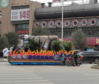 ? ? ? 迎春花車巡游活動(dòng):本次節(jié)會(huì)一共扎制了5輛長(zhǎng)7米、寬3米、高3.5米的精美花車,花車巡游中間穿插舞龍舞獅、踩高蹺、旱船等表演。