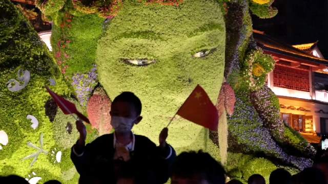 國慶,打卡金馬碧雞坊看花仙子。一游客說:看個美女不容易,人山人海。