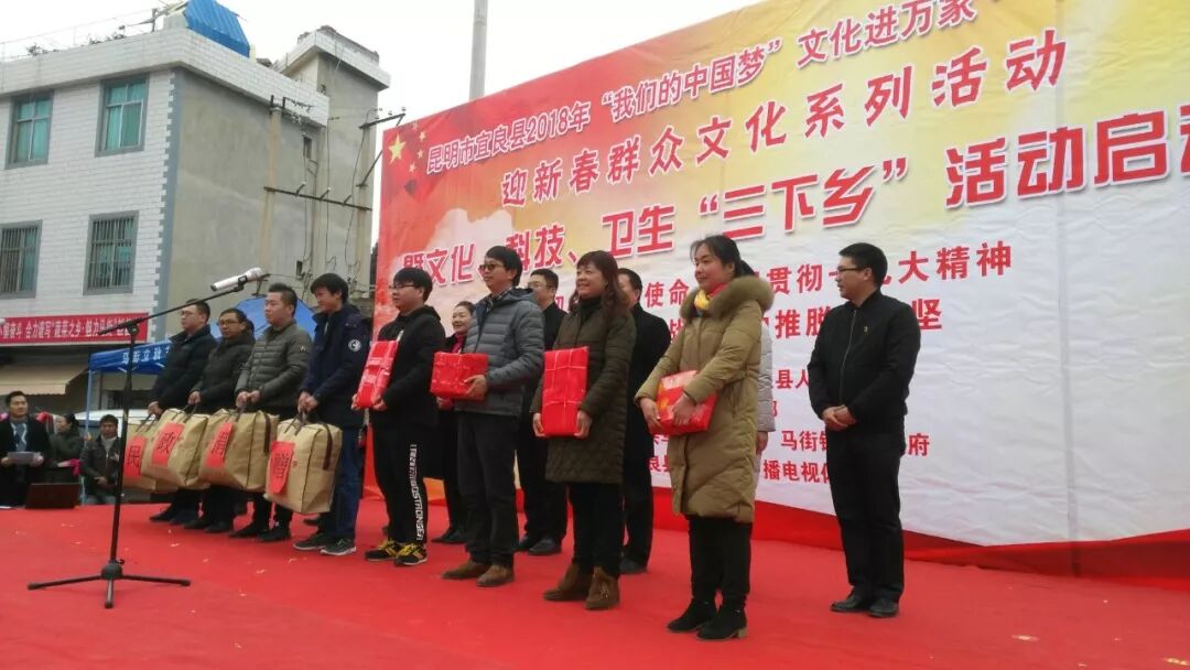 ? ? ? ?2月5日,由中共宜良縣委、宜良縣人民政府主辦,縣委宣傳部,馬街鎮(zhèn)黨委、政府和縣旅文廣體局承辦,縣委農(nóng)辦、縣文明辦、縣教育局、縣工貿(mào)科信局、縣民政局、縣環(huán)保局、縣衛(wèi)計局、縣科協(xié)、縣文聯(lián)、縣新華書店、縣電力公司等30家單位參加的宜良縣2018年文化科技衛(wèi)生“三下鄉(xiāng)”活動在馬街鎮(zhèn)啟動??h委副書記張攀、縣人大副主任楊云章、縣政協(xié)副主席劉海燕出席啟動儀式。