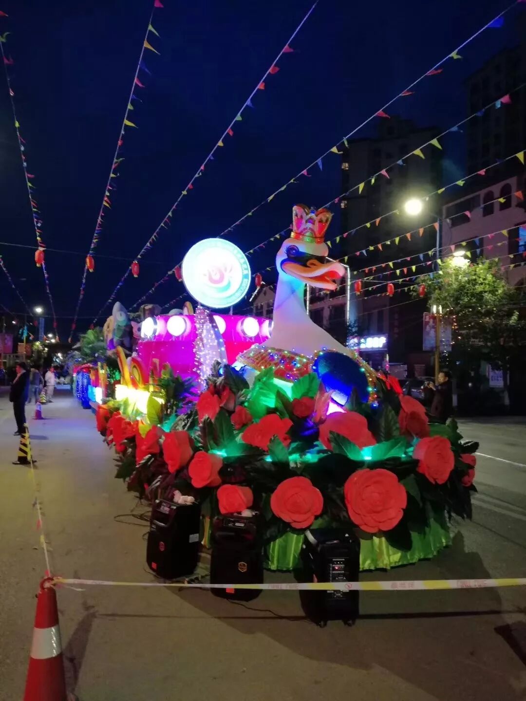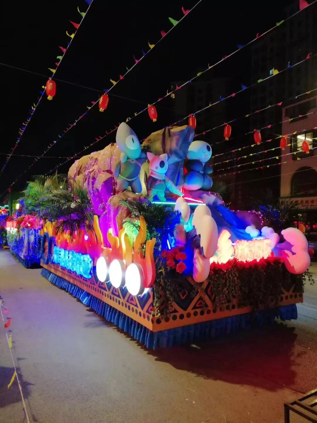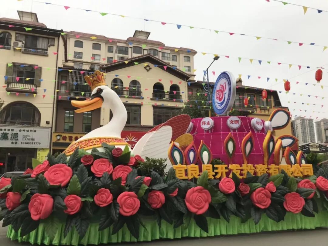 ? ? ? 開幕式現(xiàn)場,5輛長7米、寬3米、高3.5米的精美花車沿街巡游,中間穿插舞龍舞獅、踩高蹺、旱船等表演,吸引了大批市民圍觀。