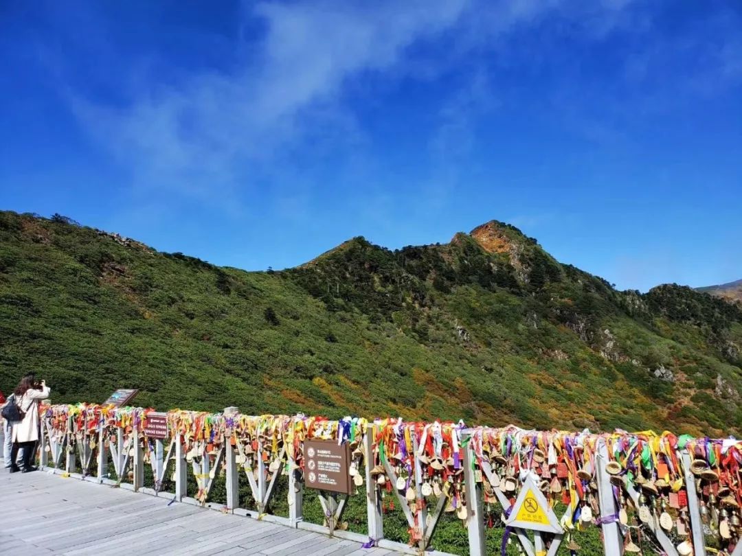 乘坐索道來到蒼山最高處——洗馬潭,木棧道以外的地方青黃相間,在大片金黃色中點綴著一絲絲綠色,白云、藍天,小溪每一個景色都讓人難以忘記。