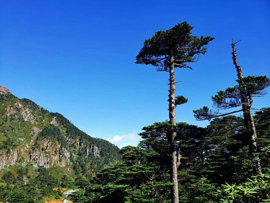 陽光揮灑在陡峭的山巒上,整齊的冷杉在深邃的山谷間顯得挺拔高大。隨風而來的白云輕輕掠過冷杉,又飄向遠方,這里的一花一木都在這里停留過,但是最后都回歸平靜。