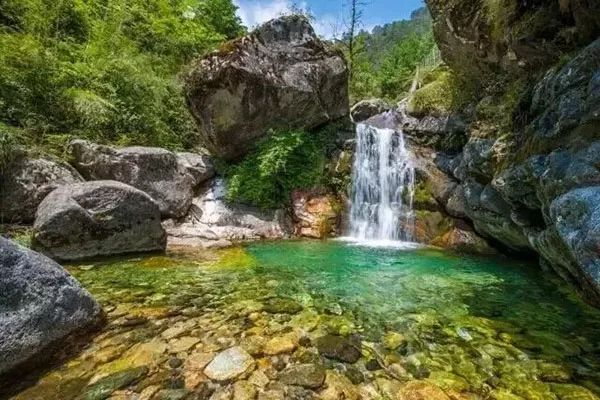 七個水潭一年四季不斷流,終年泉清見底,泉水拍打著岸邊的巖石,清澈的泉水變成了白色,流水千姿百態(tài),從高處跌落又從側面流出,一會如白色的羊脂玉,一會又如綠色的翡翠,時時刻刻都在變幻。