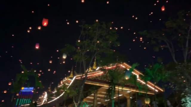 以前的潑水節(jié),大家一起放飛孔明燈,真的太舒服太美好了,連航班也為節(jié)日讓路