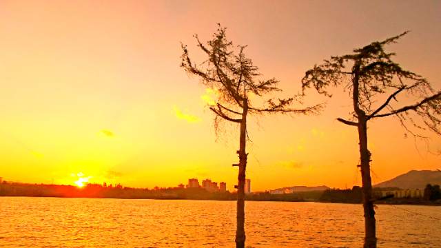 夕陽西下的安寧寧湖公園