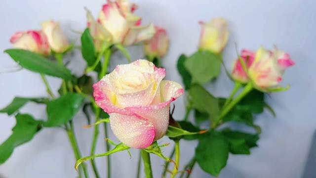 紅色玫瑰色澤鮮亮,如綢緞般絲滑的質(zhì)感,釋放著火一般的熱情;而粉紫色玫瑰則透著神秘且獨特的氣質(zhì),一面冷艷,一面溫暖;香檳色玫瑰典雅多情,捧在手里,有種即將參加好友婚禮的感覺;而那種粉白相接的玫瑰,讓我想起糖果的味道,我記得阿爾卑斯糖其中一種和玫瑰顏色很像,好像是草莓味粉。