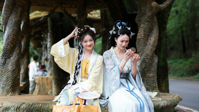 眾多身著華美漢服的小哥哥、小姐姐們儀態(tài)端莊,彩袖翩然,千年歷史沉香與滿園春色撞了滿懷。