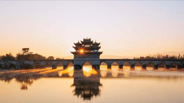一同來感受建水雙龍橋金光穿橋時的獨特魅力!