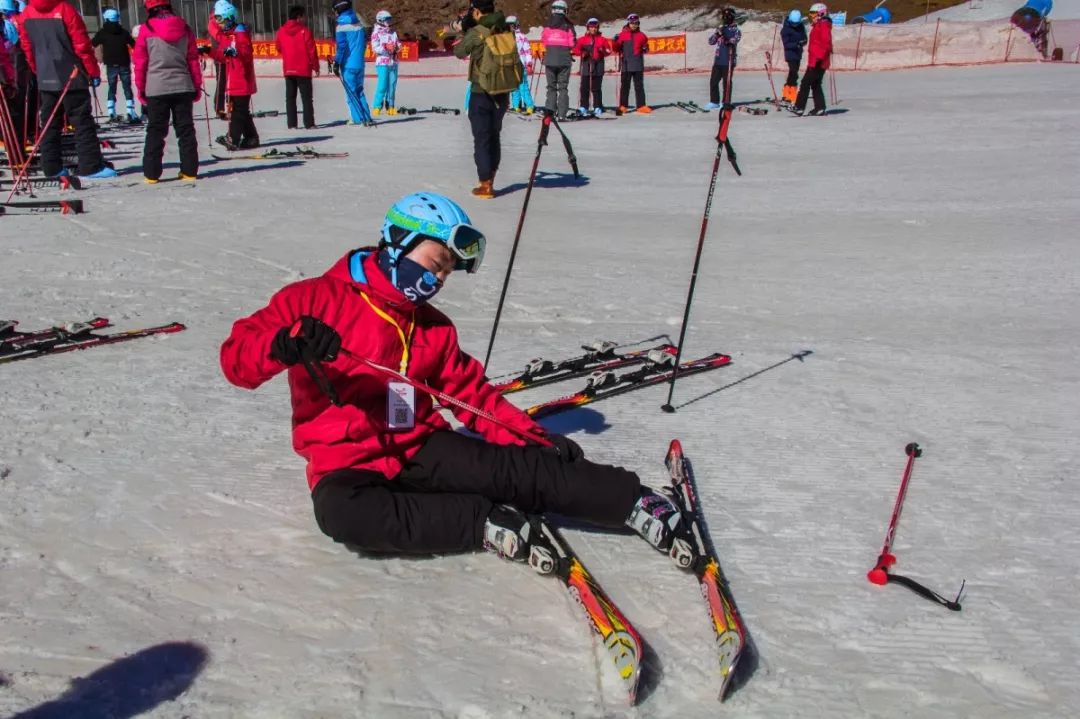 穿好滑雪服和雪鞋,戴好帽子和雪鏡,滑雪菜鳥終于開始學(xué)滑雪了,因為是初學(xué),所以選擇了比較容易的雙板,如果有一定滑雪基礎(chǔ)的人可以學(xué)習(xí)比較難的單板,滑雪場教練先從穿雪板和摔倒和剎車開始指導(dǎo)。