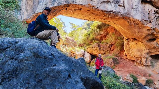 云南省彌渡天生橋風(fēng)景區(qū)是一首鋼琴協(xié)奏曲,天生橋便是最動(dòng)人心魄的一章,天生橋橋高30米,寬17米,橋孔直徑3米,全長(zhǎng)21米。傳說(shuō)天生橋是一對(duì)與惡勢(shì)力抗?fàn)幎I(xiàn)出年輕生命的情侶變化而成的。這自然是神話,是當(dāng)?shù)厝嗣窠栌眠@一優(yōu)美的神話表達(dá)一種對(duì)美好生活的理想。天生橋風(fēng)景區(qū)屬石灰?guī)r地帶,由于地殼的運(yùn)動(dòng),東西兩端斷如石闕,兩塊巨石從東西南側(cè)雙雙下滑撞在一起,于是形成了這天下奇觀。是大自然這一神來(lái)之筆,成就了天生橋。遙望天生橋如長(zhǎng)虹臥波,氣勢(shì)渾宏,笑傲塵世,一種雄壯,一種豪氣。。。