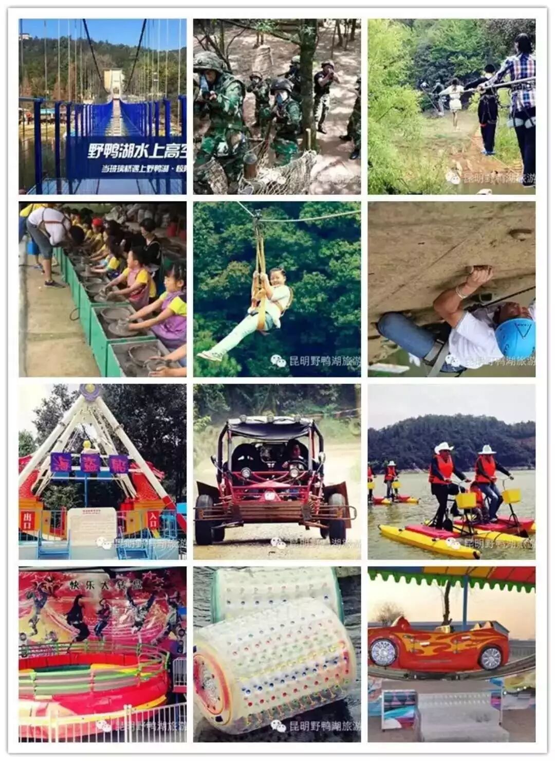 玻璃橋、攀巖、高空體驗(yàn)、水彈快打、叢林狩獵、wargame戰(zhàn)地模式)并有機(jī)會(huì)抽取千元現(xiàn)金紅包和野鴨湖各色小吃。